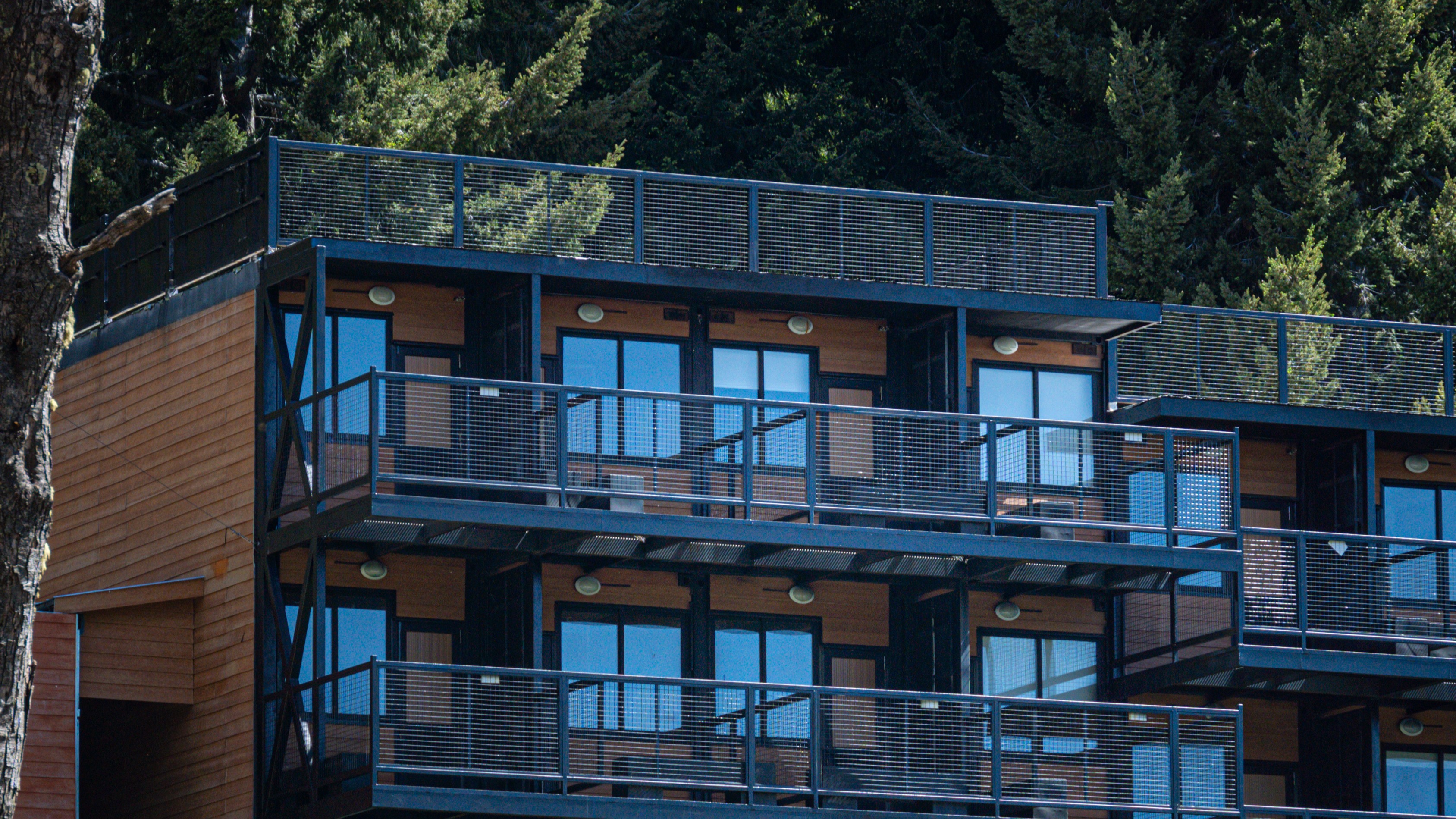 Un sólido edificio construido a partir de containers, cuenta con 3 pisos con acceso vía escaleras industriales.
